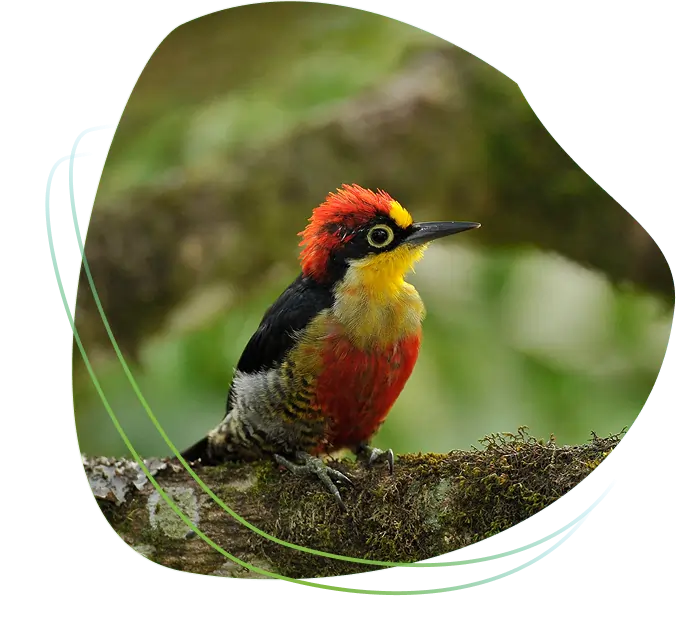 Em nosso comedouro, na área externa do restaurante, você faz sua refeição cercado pelos encantos da floresta, enquanto observa de perto diversas espécies de aves, algumas exclusivas da Mata Atlântica, em uma experiência única de conexão com o ambiente e a fauna.