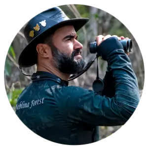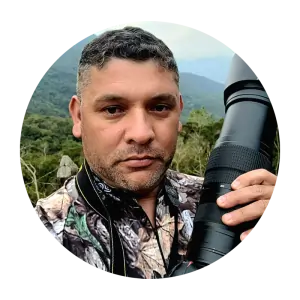 Biólogo atuante na condução de observadores de aves no bioma Mata Atlântica desde 2015. Sua forma de trabalhar durante as guiadas é bem conhecida por ser calmo, bem-humorado e por ter um ouvido bastante aguçado, Foi um dos primeiros guias a ser homologado no Legado das Águas. Conhece muito bem a Reserva e os melhores pontos de observação. Também trabalha no desenvolvimento de roteiros de observação de aves em hotéis e pousadas pelo Brasil.